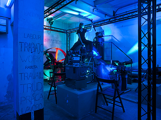 Das stillgelegte Kraftwerk im Vierundeinzig war für sich schon Metapher genug für Proneggs eindrückliche Performance über die „Tragödie der Arbeit“.
