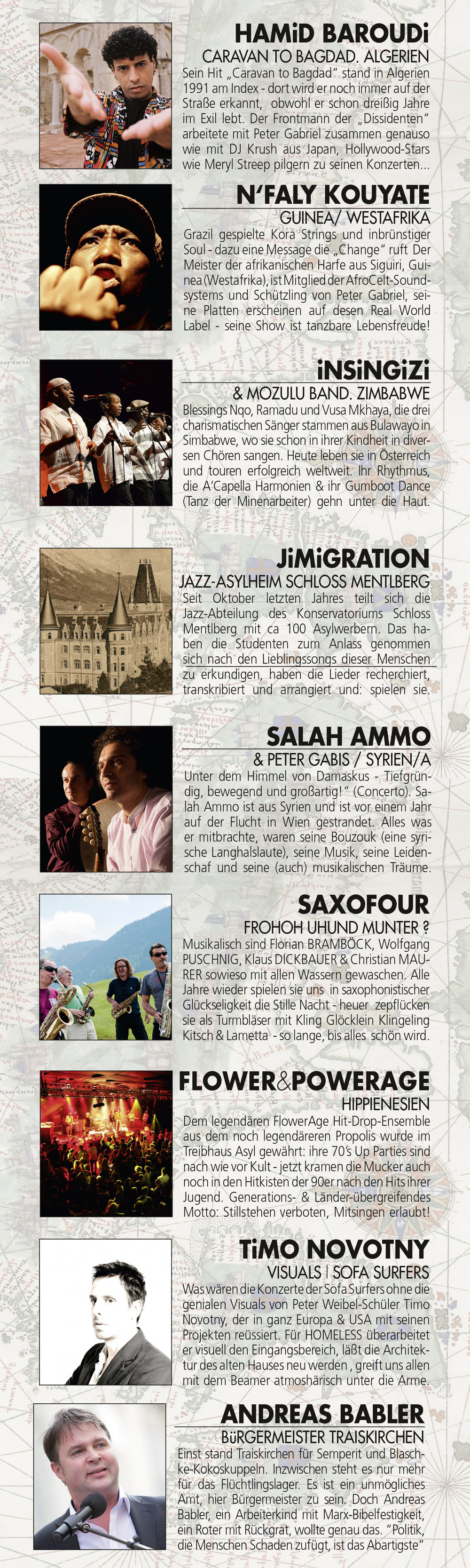 Jede gekaufte Eintrittskarte ermöglicht es uns, einen Schutzsuchenden aus den hiesigen Unterkünften einzuladen: auf das Fest, auf die Konzerte, auf Essen & Trinken: Dank an all die DeutschlehrerInnen und an alle Helferlein, die mitorganisieren & die mit ihren Schützlingen ins Treibhaus ausgehen.