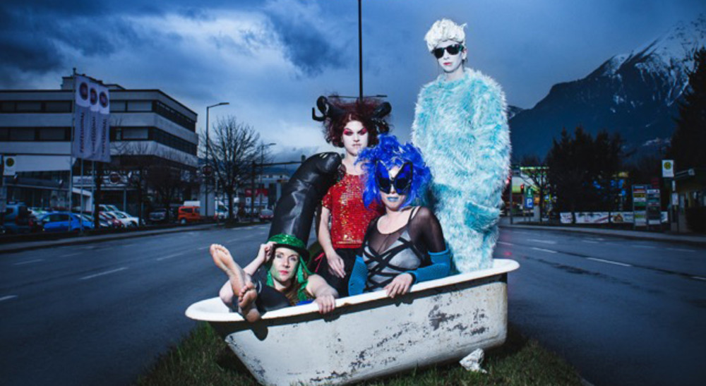 E43 - das sind 4 Frauen, 1 E-Gitarre, 3 Stimmen. Wir schimpfen gerne, trinken nach Möglichkeit eher viel und reden schiach. Experimentalwasauchimmer aus der eigenen Werkstatt, eher Musikkabarett als Liederabend, wortgewitzt derb bis poetisch surreal: postfeministische Gesellschaftskritik vornehm kodiert hinter banaler Scheiß-der-Hund-drauf-Fassade.